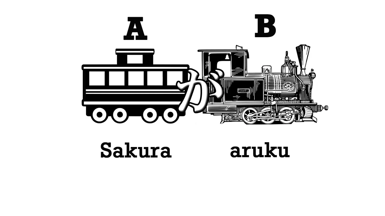 Nous allons l’imaginer comme un train. Chaque phrase japonaise a deux éléments : le wagon principal, A et la locomotive, B. La locomotive est ce qui fait bouger la phrase, ce qui la fait fonctionner. Le wagon doit être là car sans le wagon, il n’y a rien que la locomotive puisse faire bouger. Ces deux éléments constituent le noyau de chaque phrase japonaise.