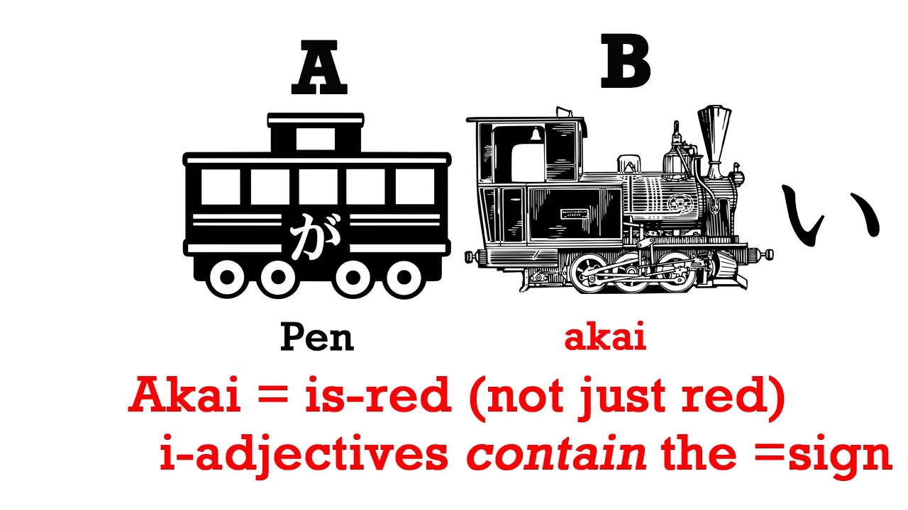 Remarque que cette phrase n’a pas de だ. Pourquoi ? Parce que l’adjectif en い あかい/赤い (rouge) – ne signifie pas "rouge", il signifie "est rouge". La fonction de だ, le signe égal, est intégrée dans les adjectifs en い.