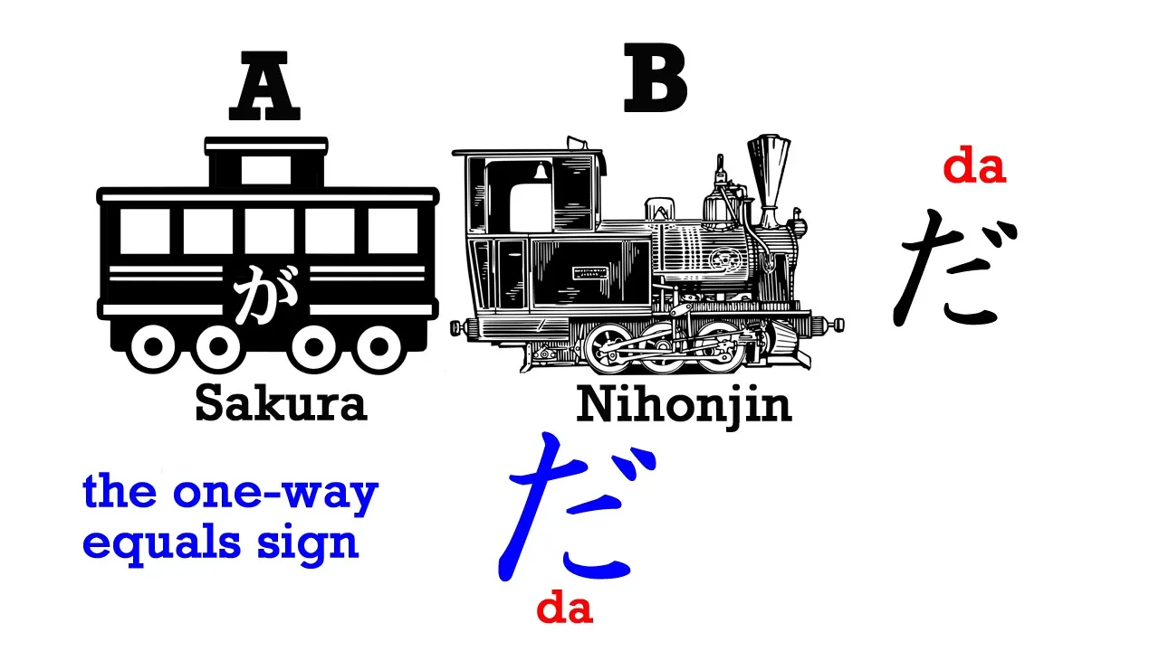 Pourquoi est-il encadré à gauche ? Parce qu’il ne fonctionne que dans un sens. Logiquement : さくらが日本人だ signifie Sakura = personne japonaise.