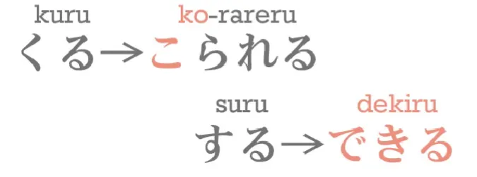 Il n'y a que deux exceptions à cette formation de la forme potentielle et ce sont les deux verbes irréguliers japonais, くる
