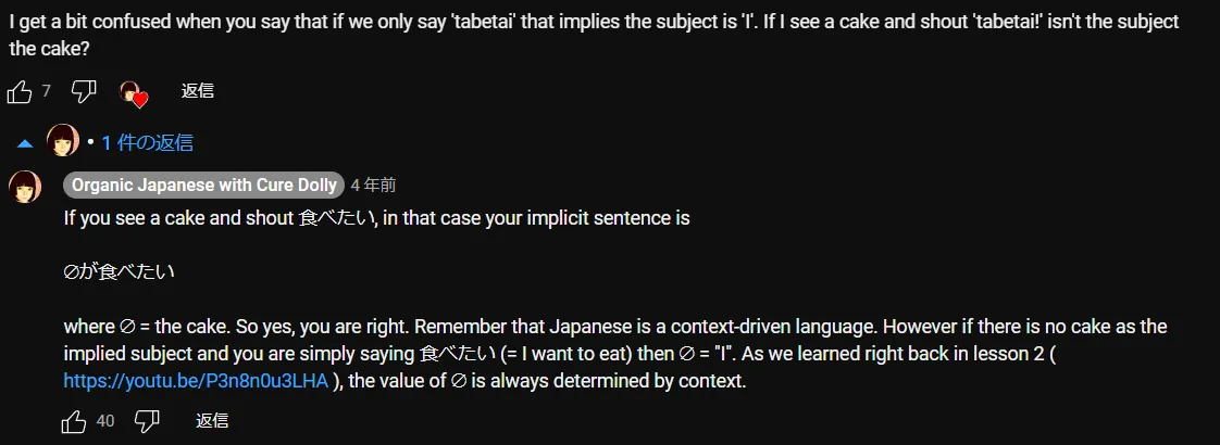 Donc, c'est vraiment très similaire aux questions que nous avons discutées la semaine dernière concernant -たい et les adjectifs de désir. Si nous gardons ce が clair dans nos esprits, tout le reste se mettra en place. Et tout comme avec la forme en たい si nous disons, (わたしは)ケーキがたべたい