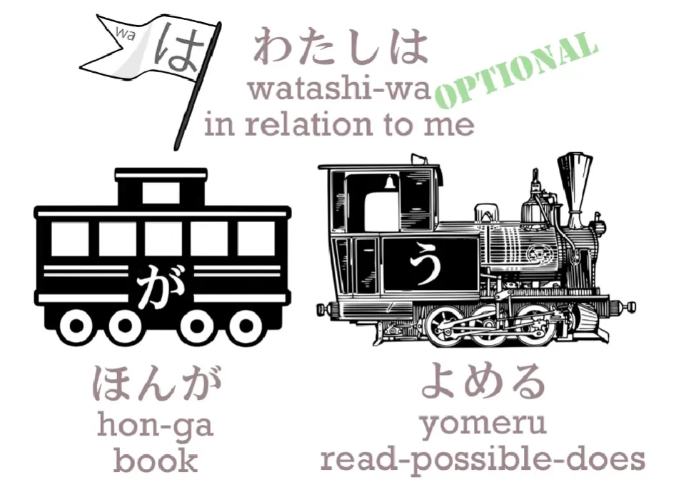 Il n'y a qu'une seule zone de danger avec la forme potentielle, et elle est très très proche de quelque chose que nous avons traité la semaine dernière[9]. Donc, si vous avez vu cette leçon, celle-ci devrait vous être très facile. Regardons une phrase typique : ほんがよめる.