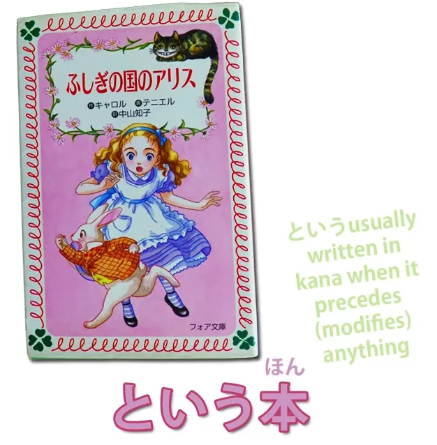 ). Et cela peut à nouveau être utilisé non seulement dans une citation littérale, mais aussi pour dire comment quelque chose est dit ou comment il est appelé. Ainsi, ふしぎの国のアリスという本