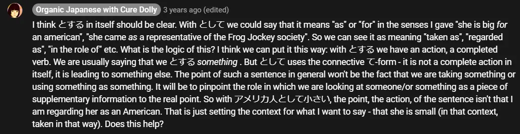 juste au cas où, ce commentaire pourrait aider certains en ce qui concerne とする & として.