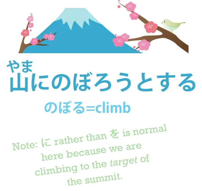 de faire quelque chose, nous utilisons la forme volitionnelle pour cela. Donc si nous disons, 山にのぼろうとする