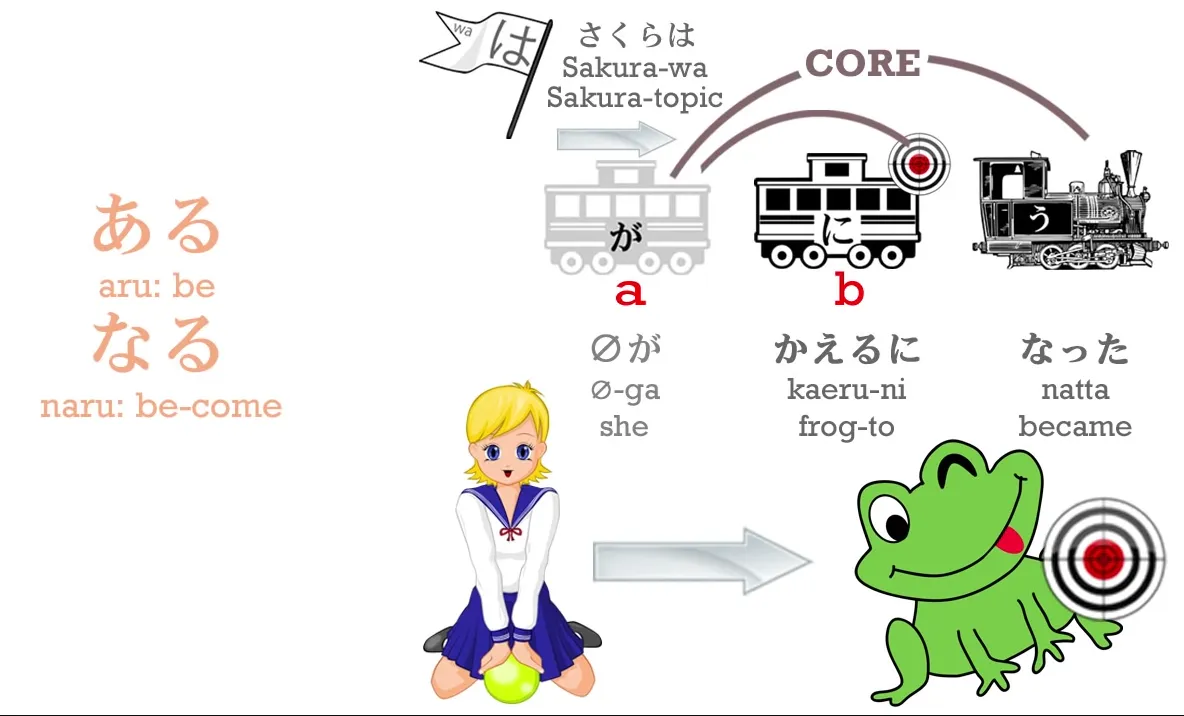 Il y a quelque temps, nous avons eu une leçon[8] dans laquelle nous parlions de さくらがかえるになる