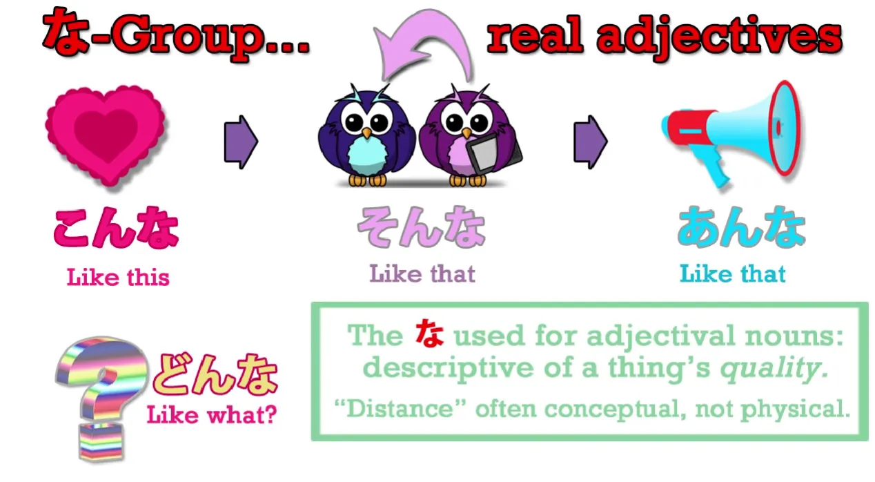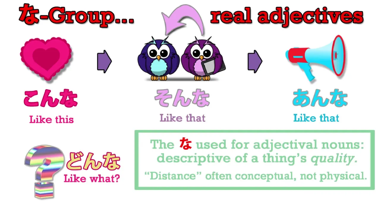 Maintenant, dans ce cas, nous utilisons -な. Et -な, comme nous le savons, est la forme de la copule qui transforme un nom adjectival en un adjectif que vous pouvez placer avant autre chose.[6] Et c'est exactement ce qui se passe ici. Ainsi, **こんな**