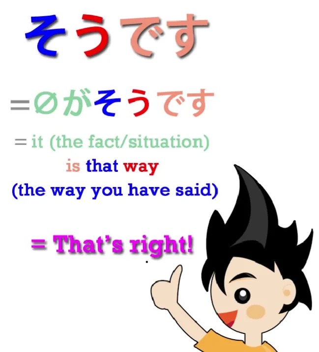 Donc ce que nous disons vraiment est *(zeroが)* **そう**だ/**そう**です