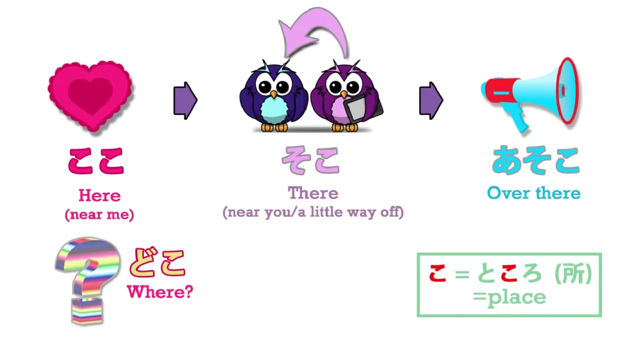 . こ- signifie un lieu, un emplacement, et cela peut en fait être écrit avec le kanji pour 所