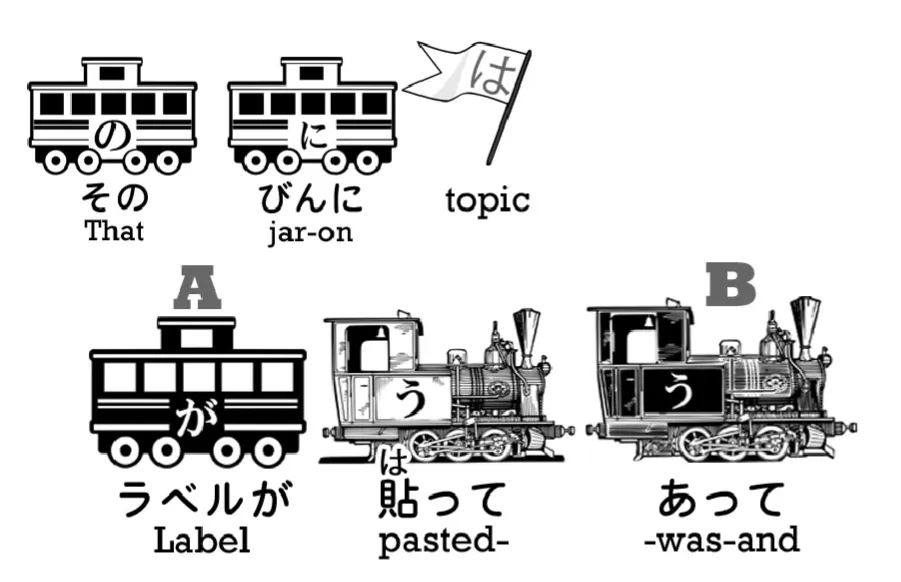 Nous avons trois verbes à la て-forme dans cette phrase. Regardons ce qu'ils font. そのびんにはラベルが貼**ってあって**.