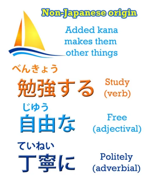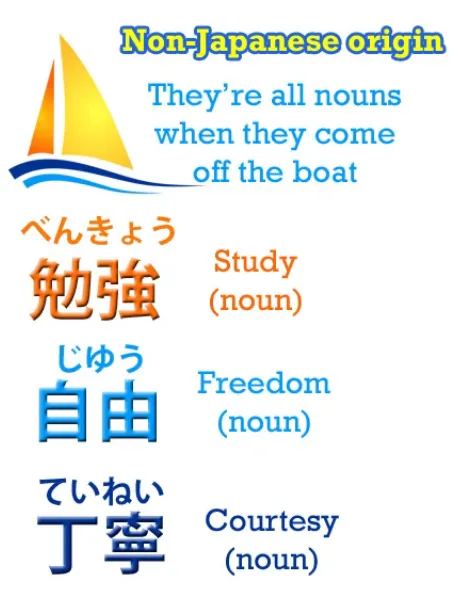Le japonais est une langue assez centrée sur les noms, car tous les mots qui viennent d'autres langues comme le chinois, dont il y a une énorme quantité, et l'anglais, et d'autres langues aussi, arrivent comme des noms. Vous pouvez les transformer en verbes en ajoutant する