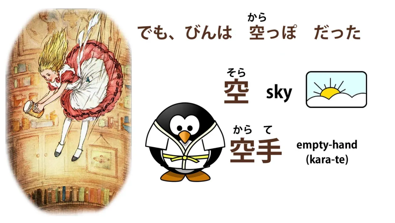 , signifiant qu'il n'y avait rien dedans, qu'il était complètement vide. Et 空っぽ