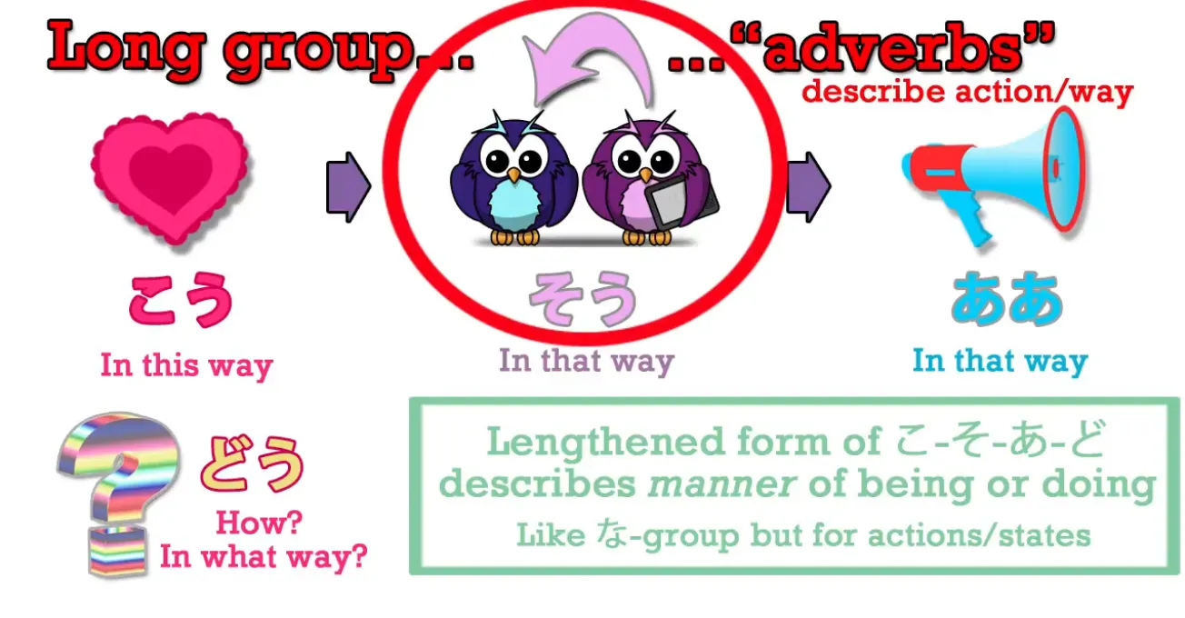 Aujourd'hui, nous allons parler du nom auxiliaire そう, qui peut signifier soit la ressemblance, soit la rumeur, soit que quelque chose ressemble à quelque chose, soit que nous énonçons non pas notre propre point de vue ou opinion, mais quelque chose que nous avons entendu. Différencier les deux peut sembler difficile, surtout lorsque les manuels vous donnent une liste de connexions avec des noms et des verbes et diverses choses différentes. C'est beaucoup moins compliqué lorsque vous comprenez le principe sous-jacent, ce qui se passe réellement avec そう. Ainsi, vous n'avez pas à mémoriser beaucoup de choses différentes. Alors, tout d'abord, qu'est-ce que そう ? C'est le même そう que nous avons appris récemment qui se trouve dans こう-そう-ああ-どう.[20]