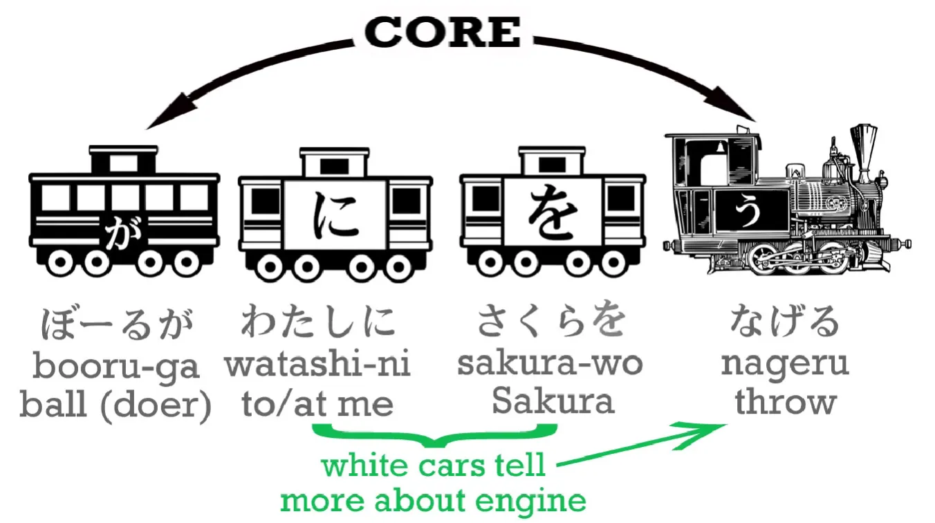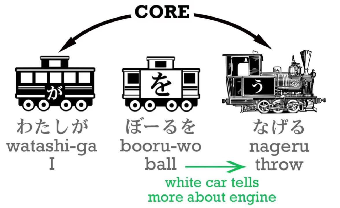 Et cela affectera toutes sortes de phrases à mesure que nous progressons en japonais. Nous allons maintenant examiner un autre "wagon" et voir comment tout fonctionne avec は.