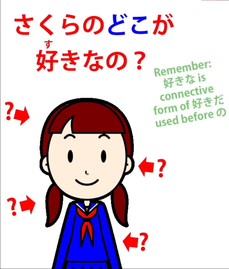 Je demande, littéralement, l'endroit où de Sakura aimes-tu ? ou Quel lieu de Sakura aimes-tu ?
