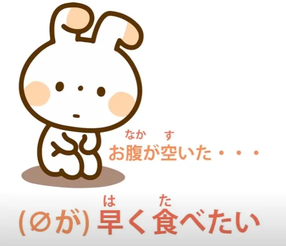 n'a pas d'acteur visible, mais l'acteur de ceci — le zéro — est moi, donc c'est (zeroが) 早く食べたい