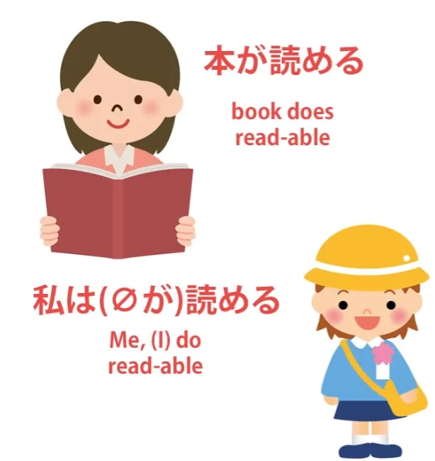 Nous ne pouvons pas traduire cela directement en français car c'est un verbe et lisible n'est pas un verbe en français, mais en japonais, nous disons Le livre fait lisible. Maintenant, c'est la subjectivité dans un certain sens car cela ne parle pas du fait qu'il est en général possible de lire le livre. Ce serait 可能性/かのうせい