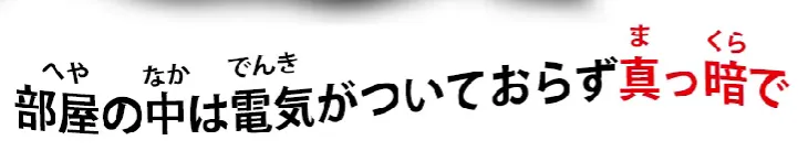 Nous savons également que si nous voyons un mot entièrement en kanji, il s'agira presque certainement d'un nom. Donc 真っ暗 est l'obscurité totale.