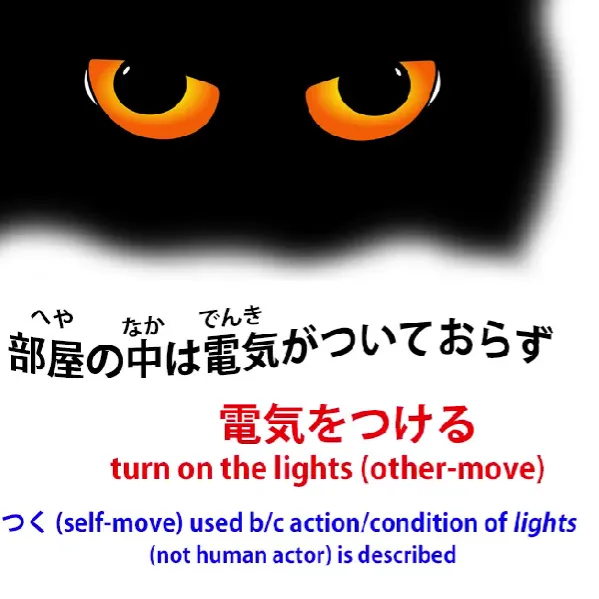 Ainsi, 電気がついておらず signifie l'électricité existait dans un état de non-allumage ou, en français simple, les lumières étaient éteintes.