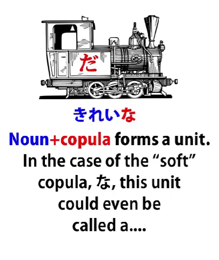 Ainsi, par exemple, lorsque nous ajoutons la copule douce な à un nom adjectival comme 綺麗 / きれい, nous avons 綺麗な (Kireina), et 綺麗な est considéré comme une unité en soi.