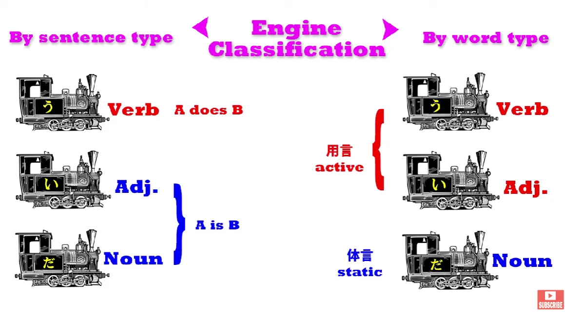 Et pour le comprendre, nous devons savoir ce que nous venons d'apprendre. Nous devons connaître 体言 et 用言, les éléments statiques et actifs.