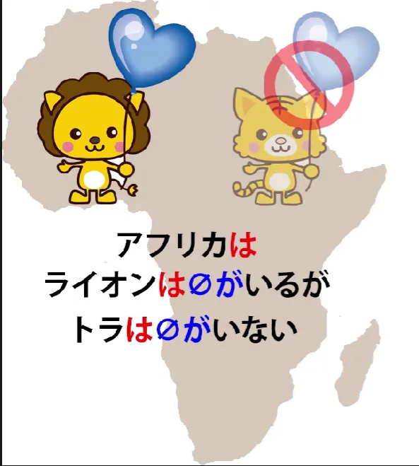 いない (Afurika wa raion wa zero ga iru ga tora wa zero ga inai). Les deux propositions logiques sont donc zeroがいる et zeroがいない, mais toutes deux énoncent leurs propres sous-thèmes.