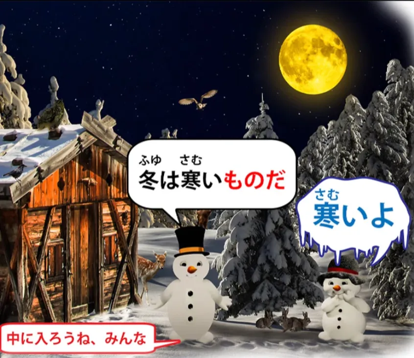 (Fuyu wa samui mono da), ce que nous disons est « l'hiver est froid, et c'est juste une chose, c'est une chose, vous devez vous y faire. »