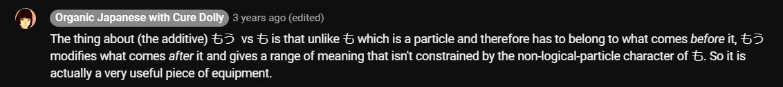 dont nous avons parlé, celui qui signifie déjà, et une pour un autre もう
