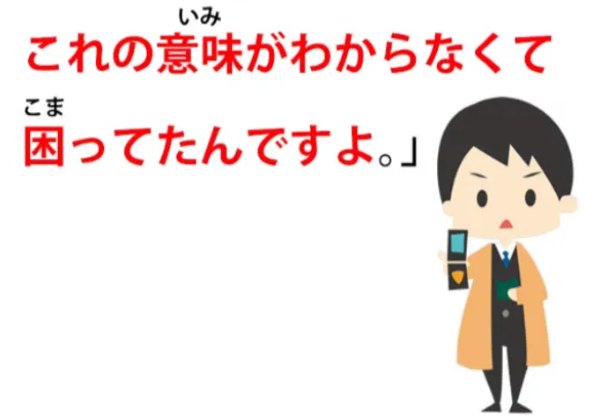 (komaru) est être perplexe / ne pas savoir quoi faire donc parce que sa signification ne se fait pas compréhensible... parce que nous ne pouvons pas comprendre sa signification, comme nous le disons en français, ...nous sommes perplexes. Et encore cette terminaison んです