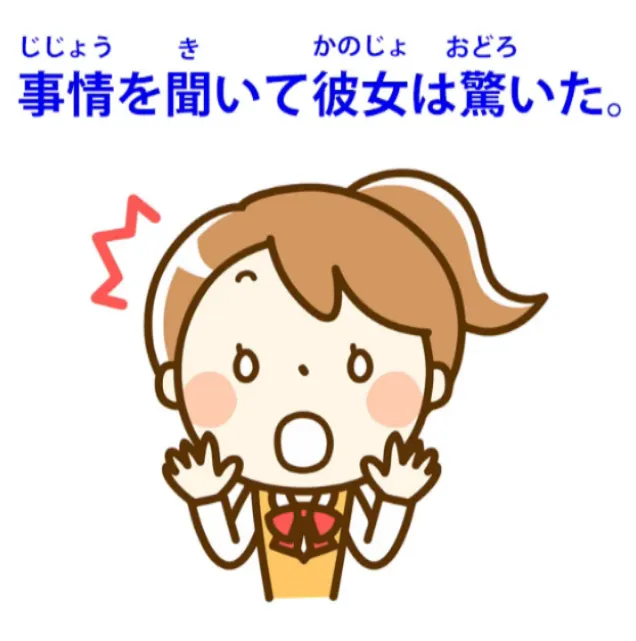 (odoroita) est généralement traduit par être surpris, mais cela peut être plus fort que cela, et nous pouvons voir que c'est plus fort que cela dans ce cas. Lorsqu'elle a demandé la situation, elle a été alarmée ou choquée. Et le 彼女は