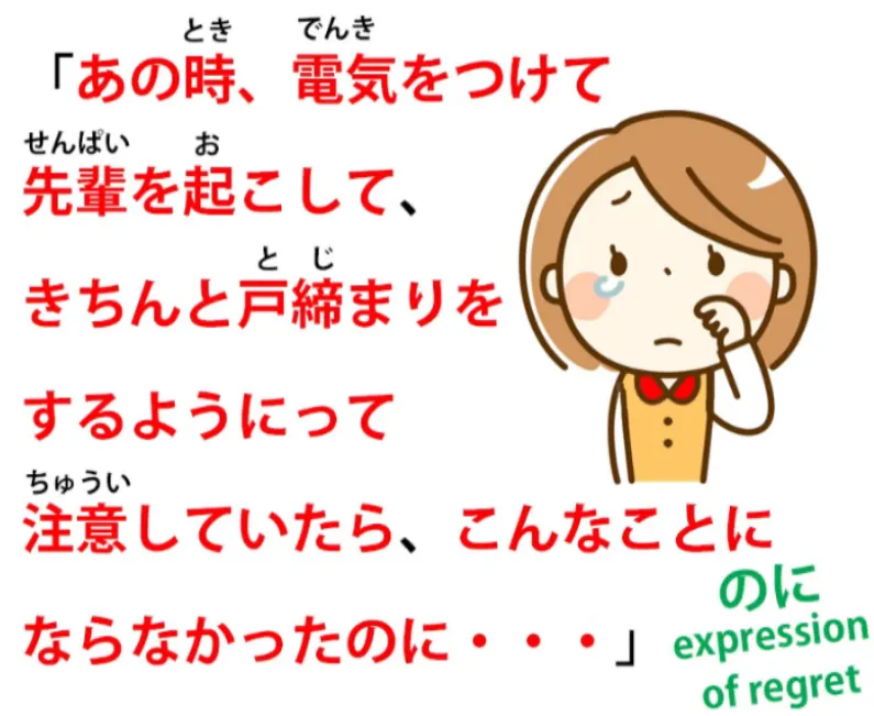 (ano toki) — à ce moment-là — 「電気を付けて先輩を起こして」 (Denki o tsukete senpai o okoshite) — si j'avais allumé la lumière –