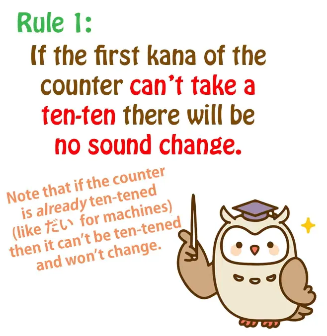 Tout d'abord, si le premier kana d'un compteur ne peut pas prendre un ten-ten (〃, un autre nom pour le Dakuten), alors il n'y aura aucune variation du tout.