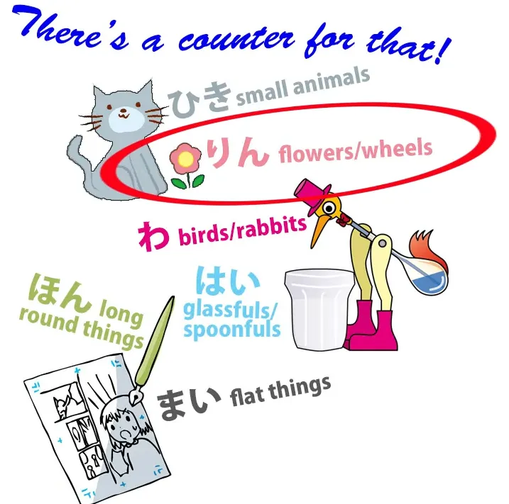 (rin) doit être le compteur. (輪 / りん, compteur pour les roues et les fleurs)