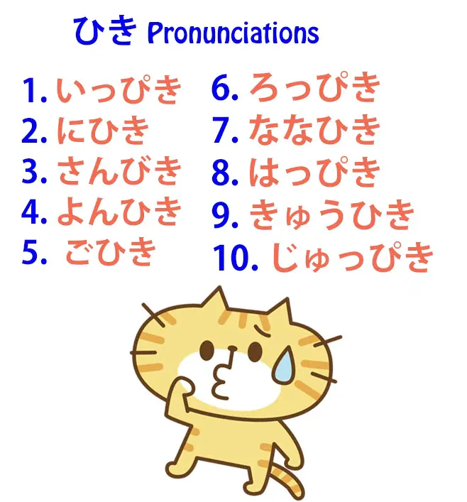 (hiki), qui est le compteur pour les petits animaux. Nous disons いっぴきの猫
