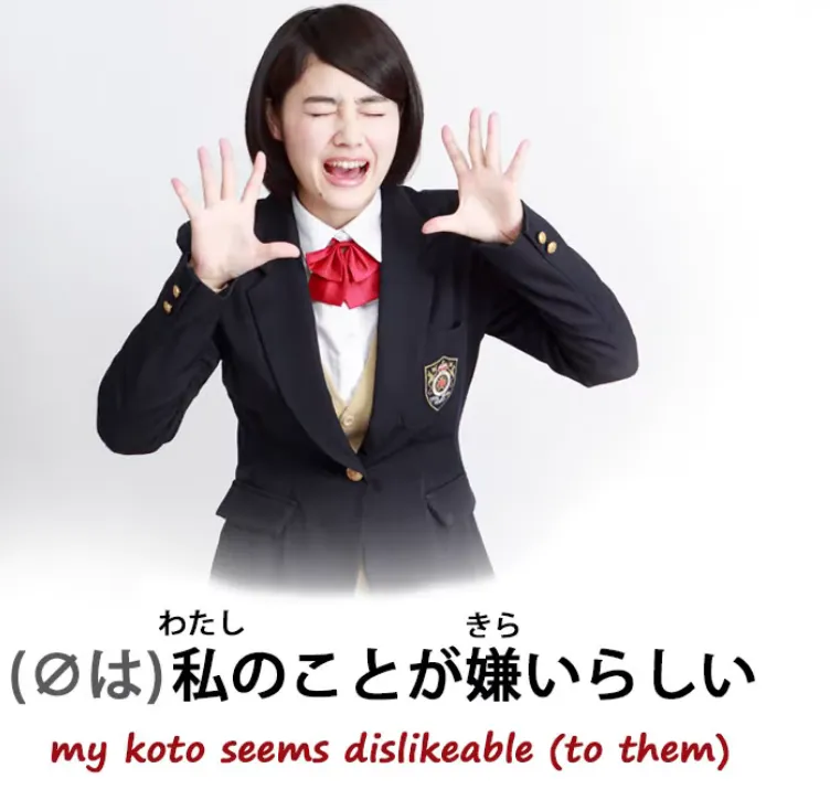 De même, nous pourrions dire des choses comme *(zéro est)*私のことが嫌いらしい