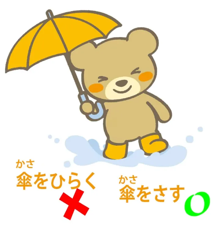 Et juste une note en aparté ici : avec un parapluie, qui s'étale aussi et vous pourriez être enclin à dire ひらく