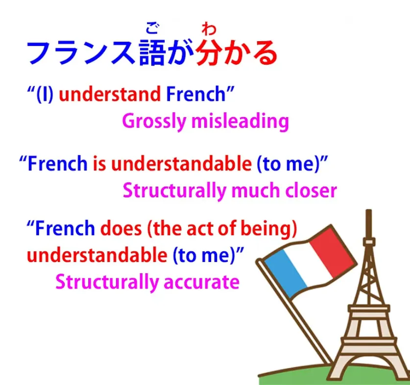 (wakaru), qui est souvent traduit par les dictionnaires et les manuels français par comprendre
