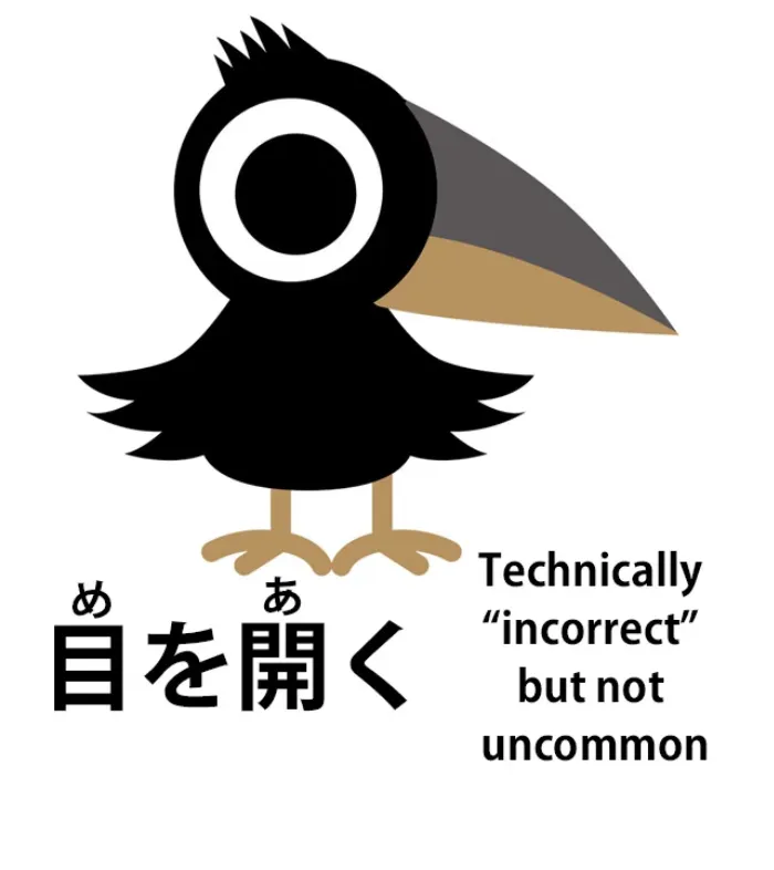 (me o aku, ouvrir ses yeux), ce qui est techniquement incorrect aux yeux des grammairiens car 開く