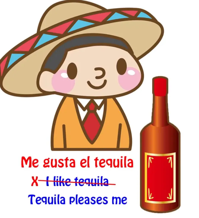 Maintenant, le fait étrange à ce sujet est que nous n'avons même pas besoin d'aller jusqu'au japonais pour savoir que cela arrive tout le temps. Cela arrive en espagnol. Me gusta el Tequila