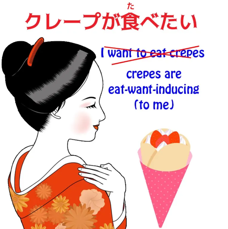 (kurēpu ga tabetai), qui, bien sûr, dans tous les manuels est traduite par Je veux manger des crêpes