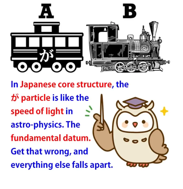 Maintenant, le particule が, comme je l'ai expliqué à diverses reprises auparavant, est le noyau absolu du japonais[1].