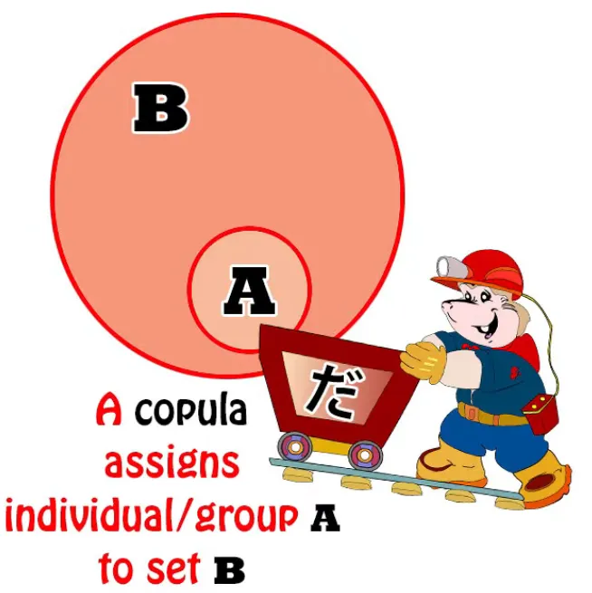 (Sakura ga nihonjin da - Sakura est Japonaise) nous disons que Sakura (nom A) fait partie de l'ensemble des Japonais (nom B).