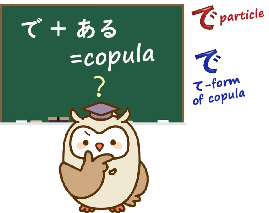 Ce ne peut pas être la forme en て de la copule car la copule fondamentalene peut pas être composée de deux éléments, dont l'un est déjà la forme en て d'elle-même.