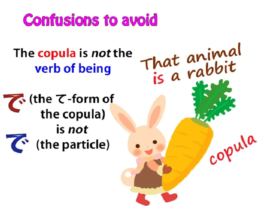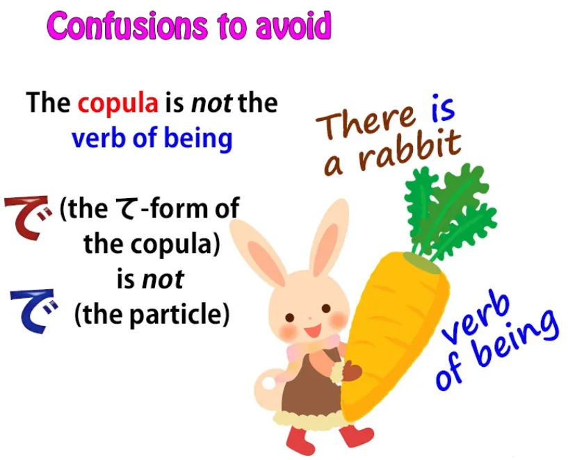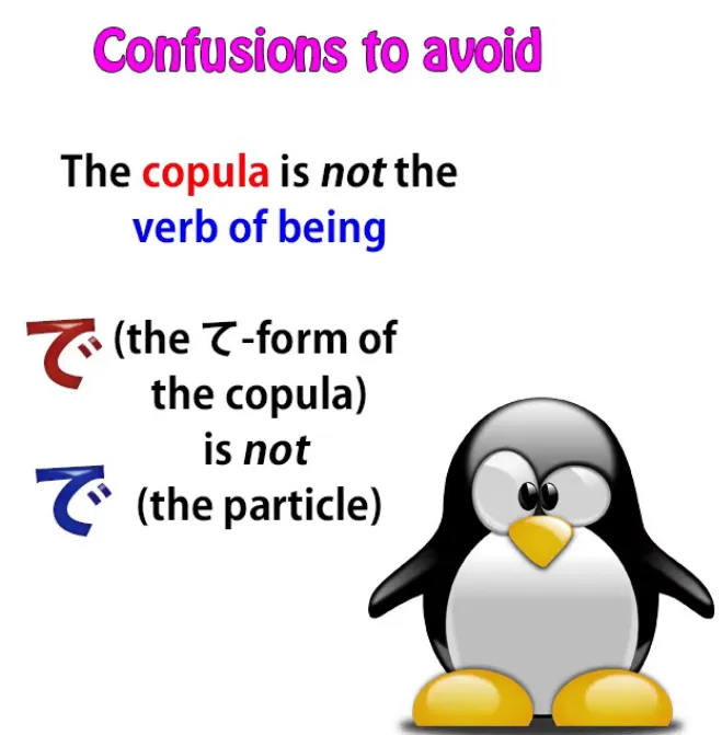 Les deux choses que nous devons savoir sont d'abord ce qu'est réellement la copule,et la seconde est ce que fait réellement la particule で