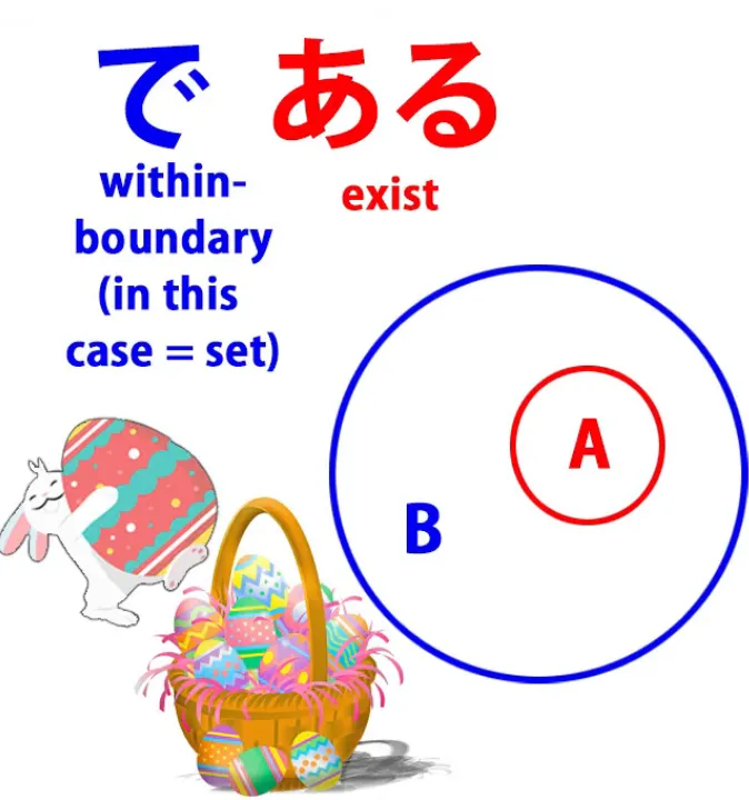 (washi ga tori da - un aigle est un oiseau), nous disons qu'un aigle existe à l'intérieur de la limite, à l'intérieur du paramètre, à l'intérieur de l'ensemble, oiseaux