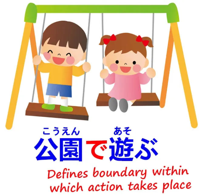est de dire où une action a lieu :**公園で**遊ぶ