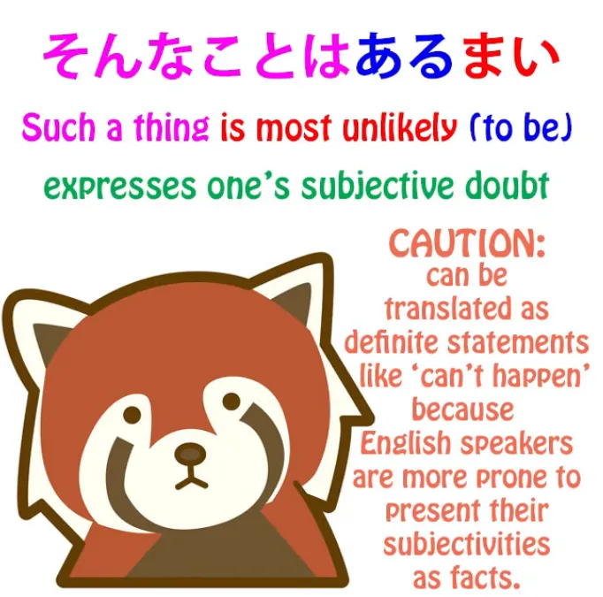 (sonna koto wa arumai - ce n'est tout simplement pas probable / je ne pense pas qu'une telle chose soit probable du tout).