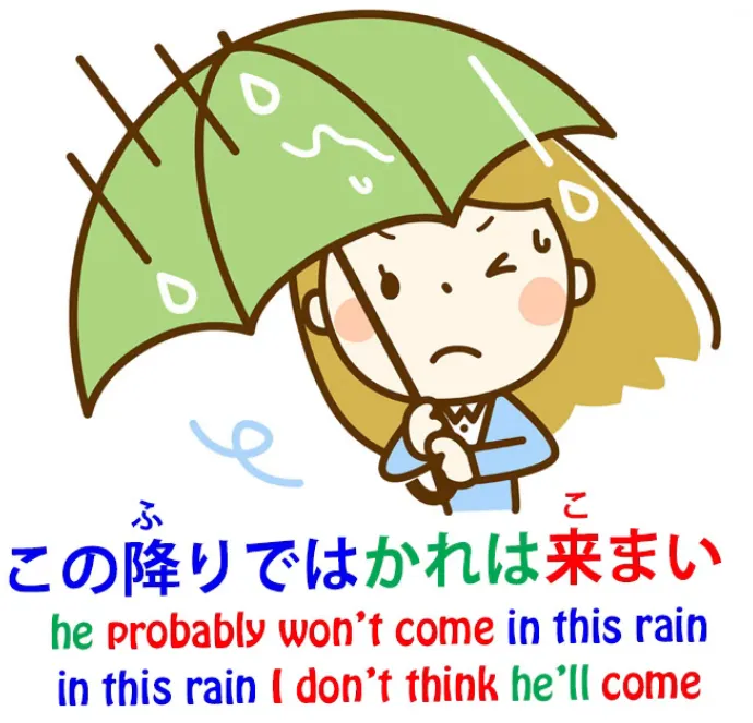 (kono furi de wa kare wa komai - Avec cette averse, je doute qu'il vienne).
