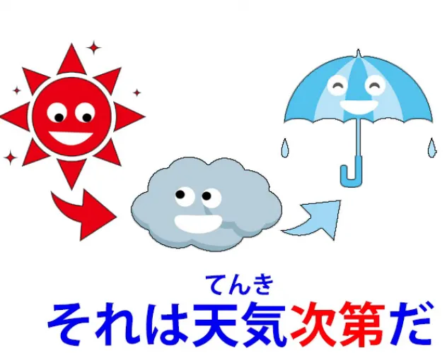 (tenki shidai) signifie la qualité de la météo, le type de météo, et 気分次第