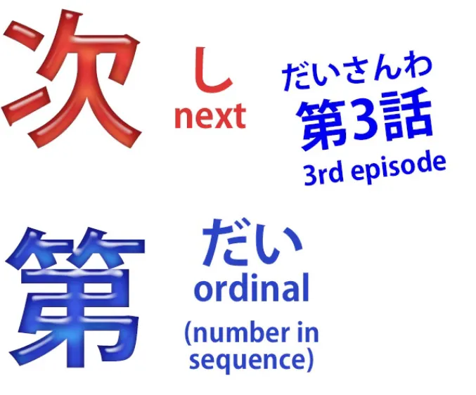 , etc. En japonais, heureusement, nous n'avons qu'un seul ordinal pour chaque nombre et c'est 第